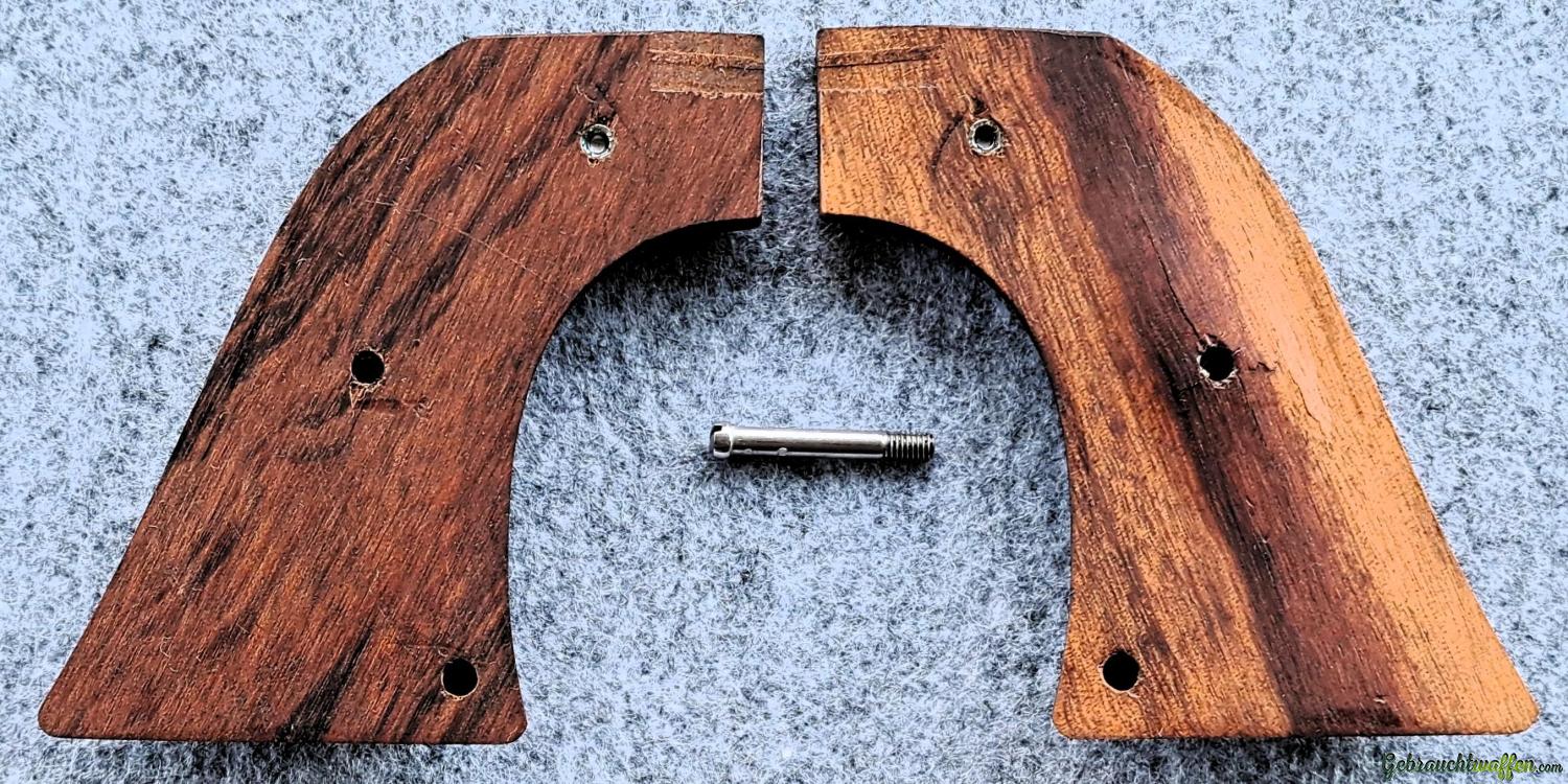 Gebrauchter Holzgriff, war auf Ruger Super Blackhawk mit “Dragoon Style" Rahmen montiert.
