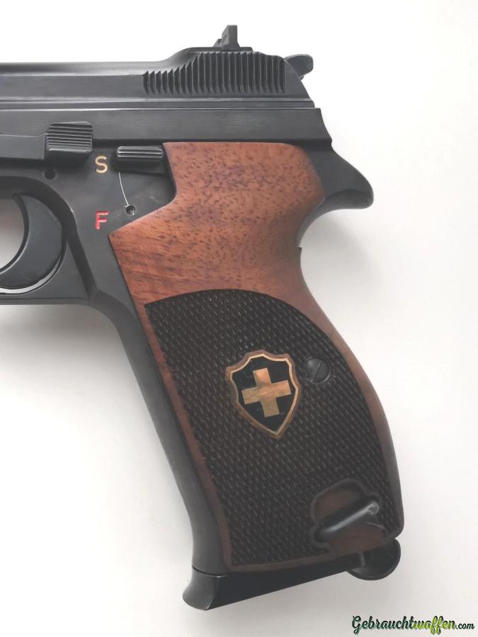 Zu verkaufen wie abgebildet sehr schöne neue Form- Holzgriffschalen mit Grip und Schweizerkreuz für die SIG P210 / P49.