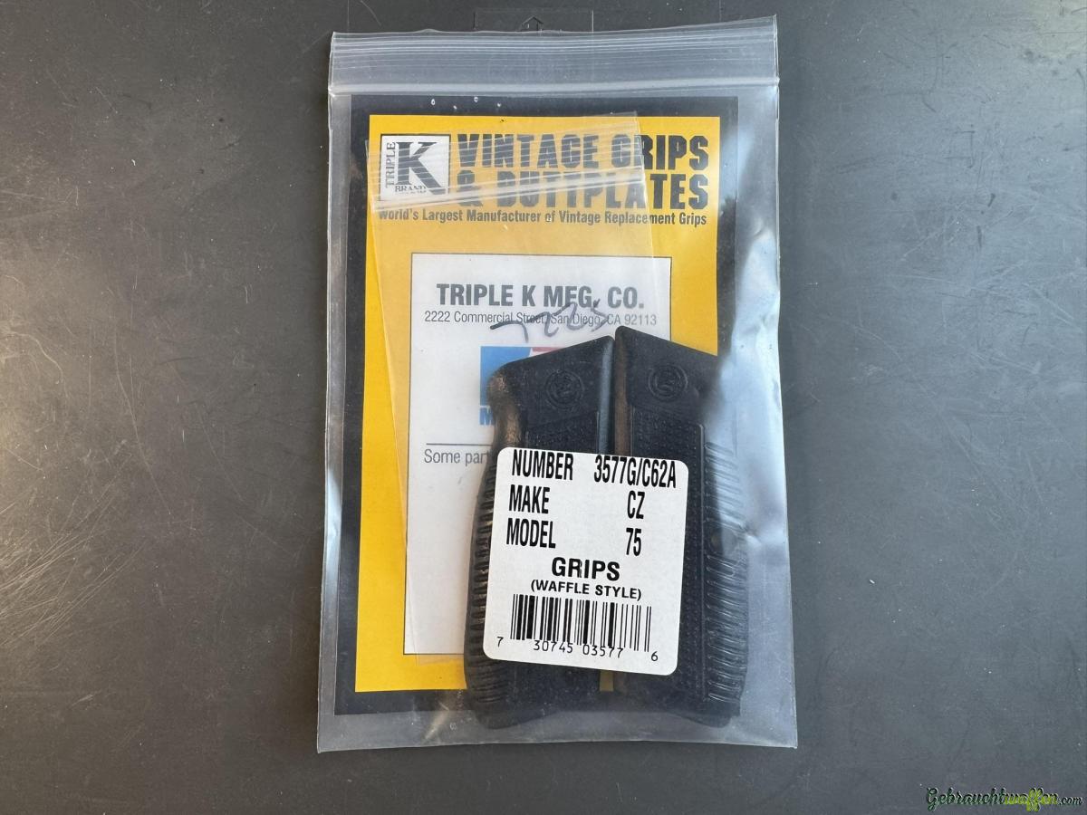 Zum Verkauf steht ein Paar neuer Retro-Griffschalen für die Pistole CZ-75, hergestellt von Triple K Mfg in den USA.
