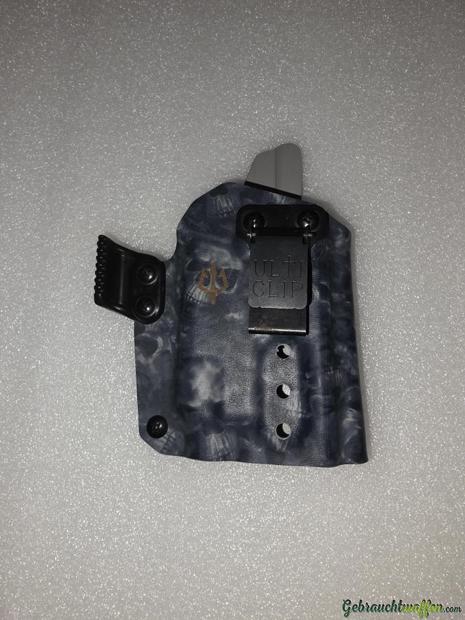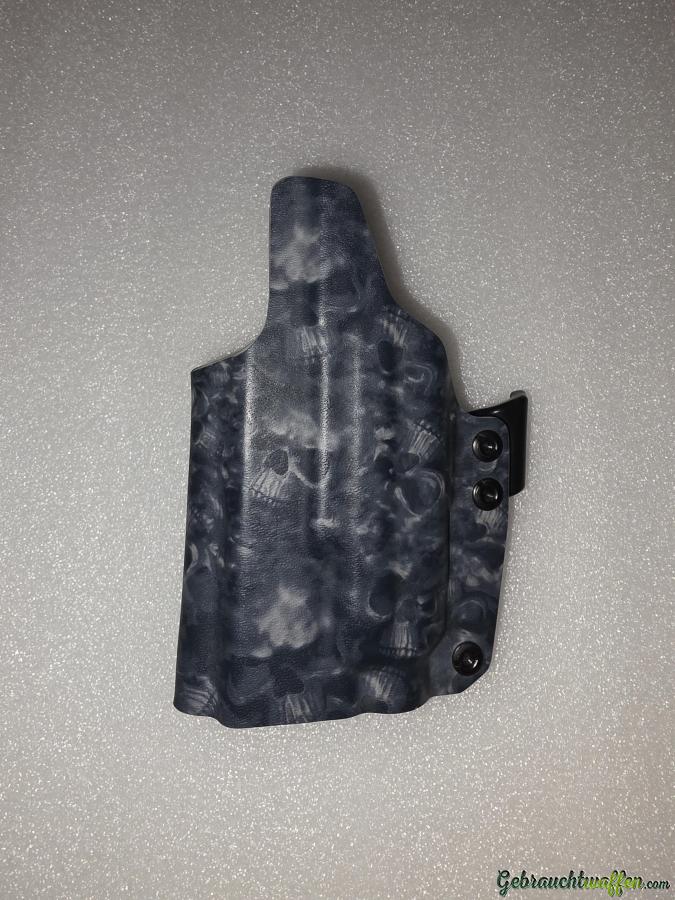 Black Trident Viking Holster für G19+TLR7 RH, IWB, mit Skull Muster und Ulticlip