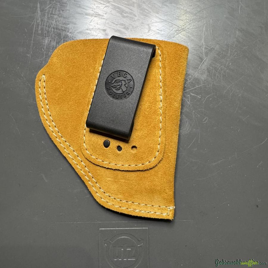 Zum Verkauf steht ein IWB-Holster aus Wildleder von Vega Holsters für Revolver mit 2-Zoll-Lauf wie den Colt Detective oder ähnliche Modelle. Dieses Modell wird mit einem 3-fach verstellbaren Clip geliefert.