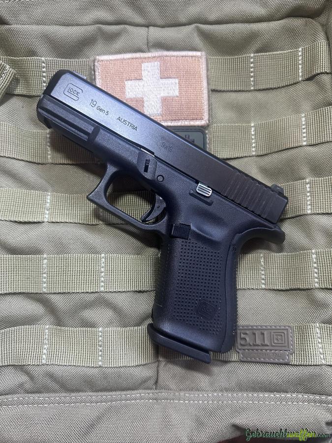 Ausgerüstet mit original Glock Tritium Nachtvisier (Stahl)
