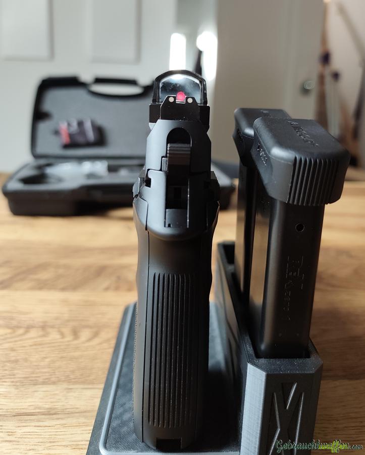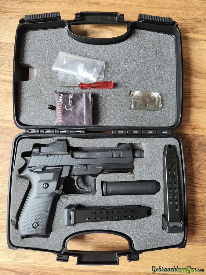 Entweder wie am Foto mit Red Dot ( Docter Sight II ) 550 oder Pistole alleine um 400.