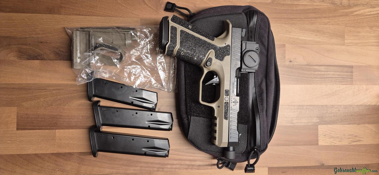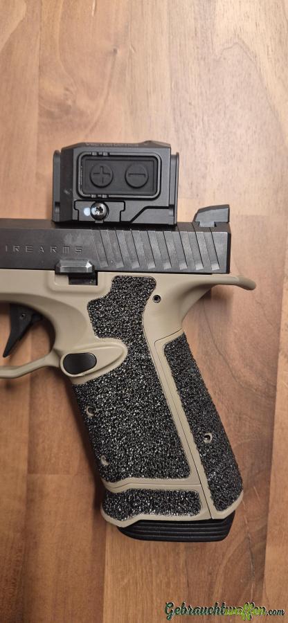 Die Waffe hat einen Acro-Cut, montiert ist ein Vector Frenzy 3moa closed emitter Rotpunktvisier.