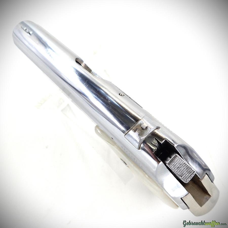 Baskische Pistole, Modell 380, Kaliber .380 ACP (9 mm Kurz), polierte Chromoberfläche, guter Zustand, inklusive Originalverpackung.