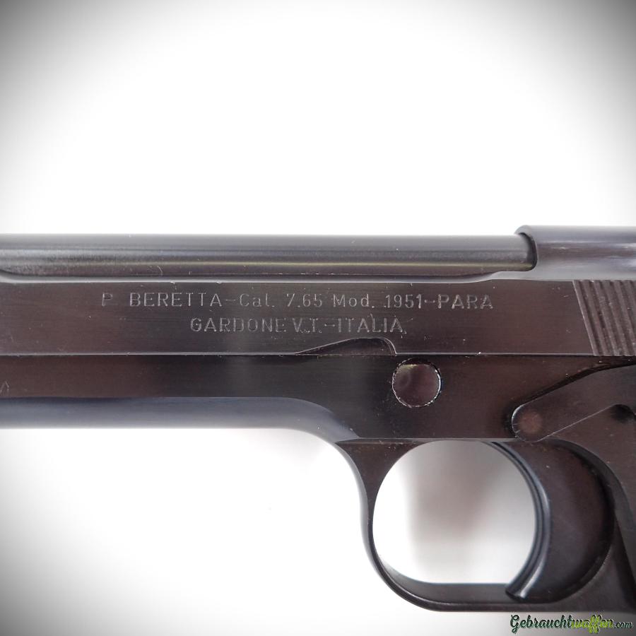 Beretta-Pistole Mod. 1951, Kal. 7.65Para, 8-Schuss-Magazin, Stahlgehäuse und -verschluss, SA-Abzug, seltenere Version in diesem Kaliber, hergestellt 1971 (Code XX7), in ausgezeichnetem Zustand, geliefert mit Lederetui.