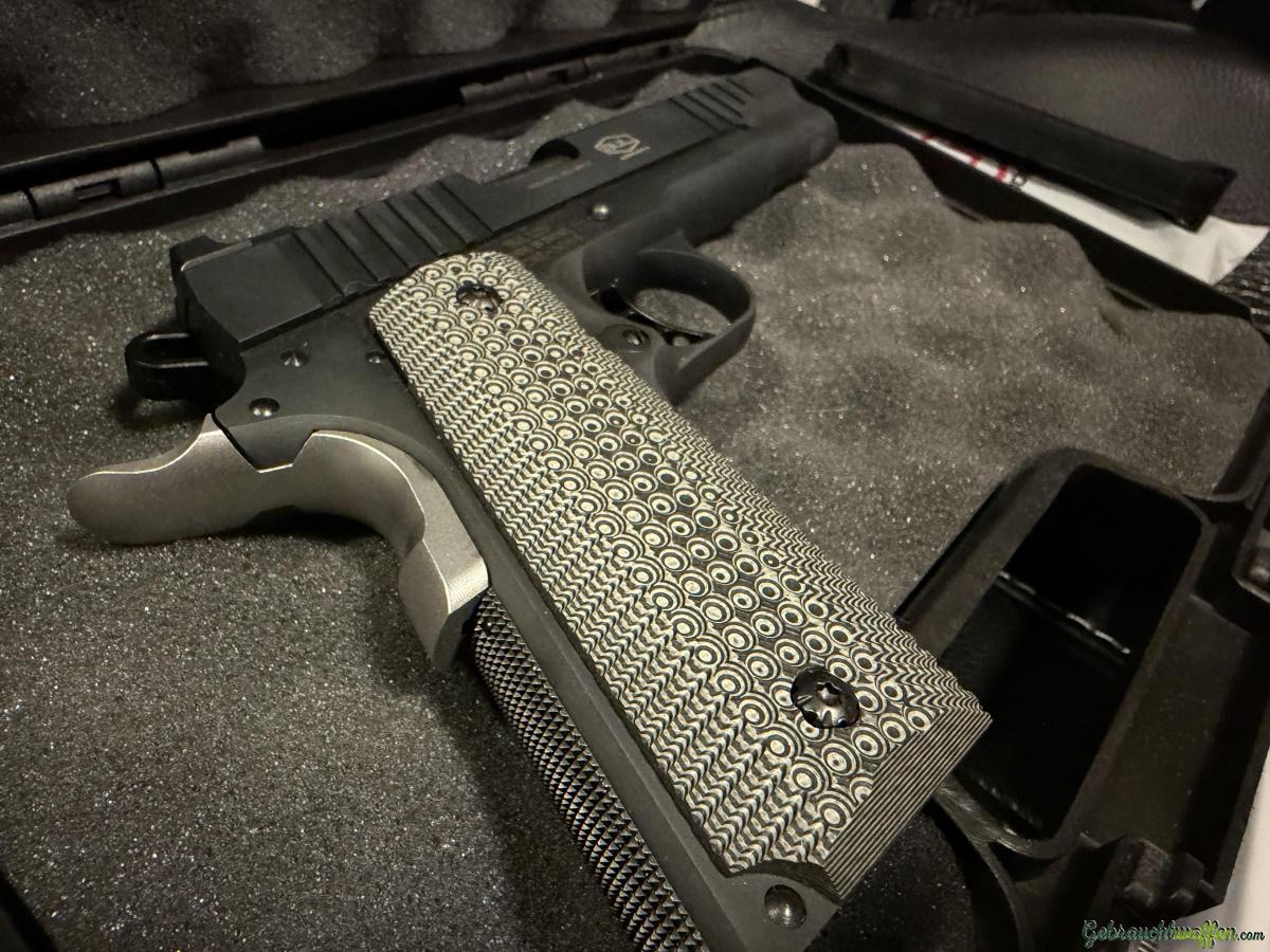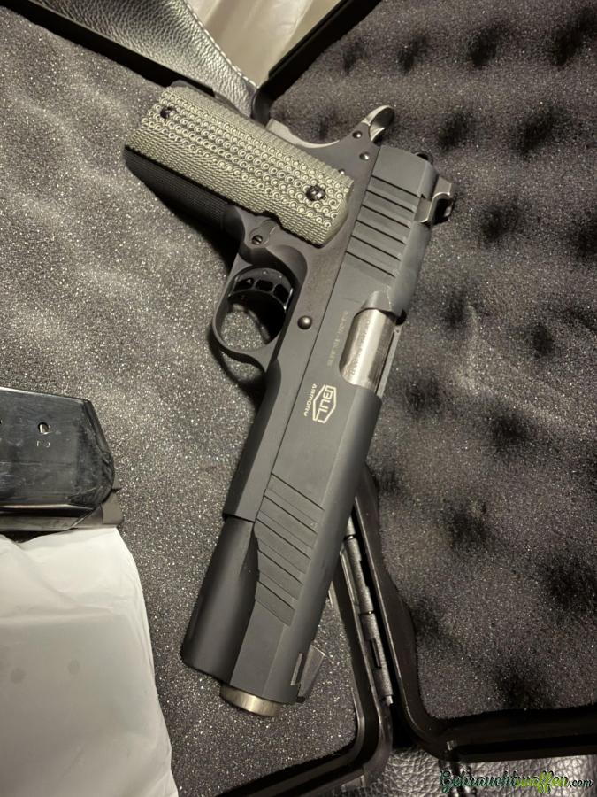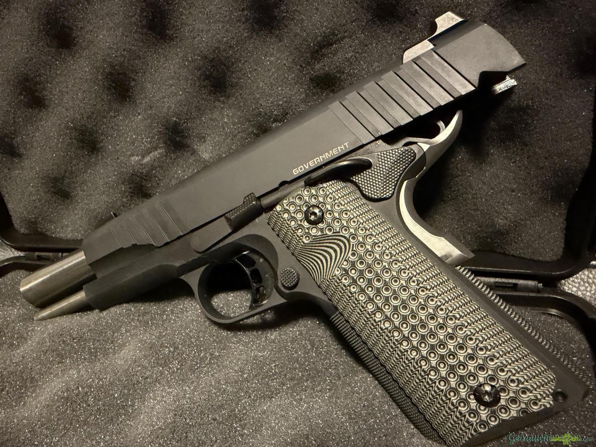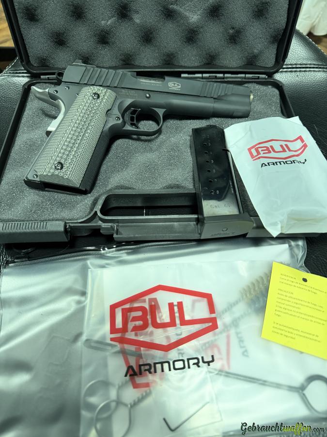 Verkauft wird eine der hochwertigsten und robustesten 1911er überhaupt, aus dem bekannten Hause BUL. Es handelt sich um das Modell 1911 Government im Kaliber .45 ACP, mit dem beliebten Bull Barrell und in der mittlerweile vergriffenen Farbe schwarz. Die Waffe wurde lediglich einmal geschossen (ca. 80 Schuss) und danach lediglich in der Sammlung gehalten.