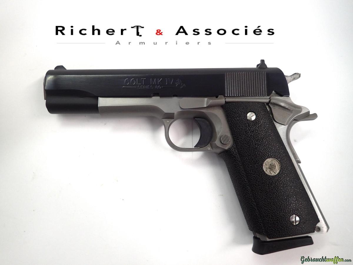 Pistolet Colt, mod. MKIV Combat Elite, cal. 45acp, avec hausse fixe et guidon fixes, fabriqué en 1988, en très bon état.