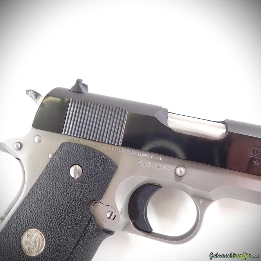 Colt Pistole, Modell MKIV Combat Elite, Kaliber .45 ACP, 5-Zoll-Lauf, zweifarbige Ausführung, traditioneller SAO-Abzug, feste Visierung, Baujahr 1988, sehr guter Zustand.