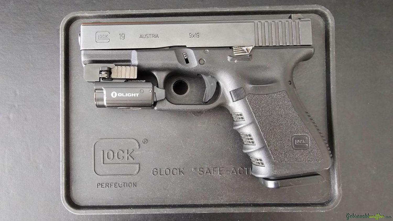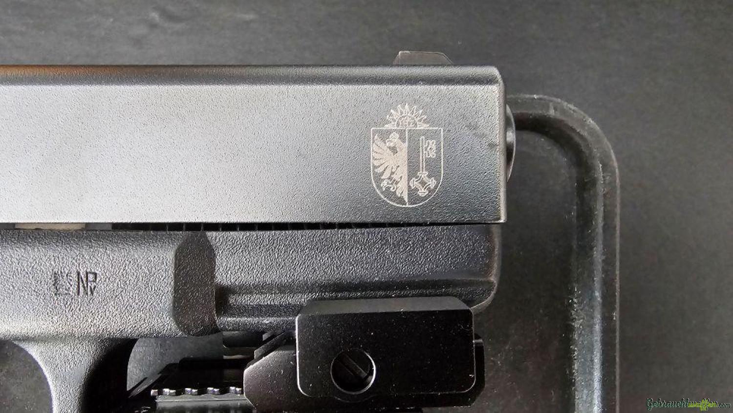 Sehr gut erhaltene Behördenwaffe, Glock 19 Gen. 3, Kantonspolizei Genf.