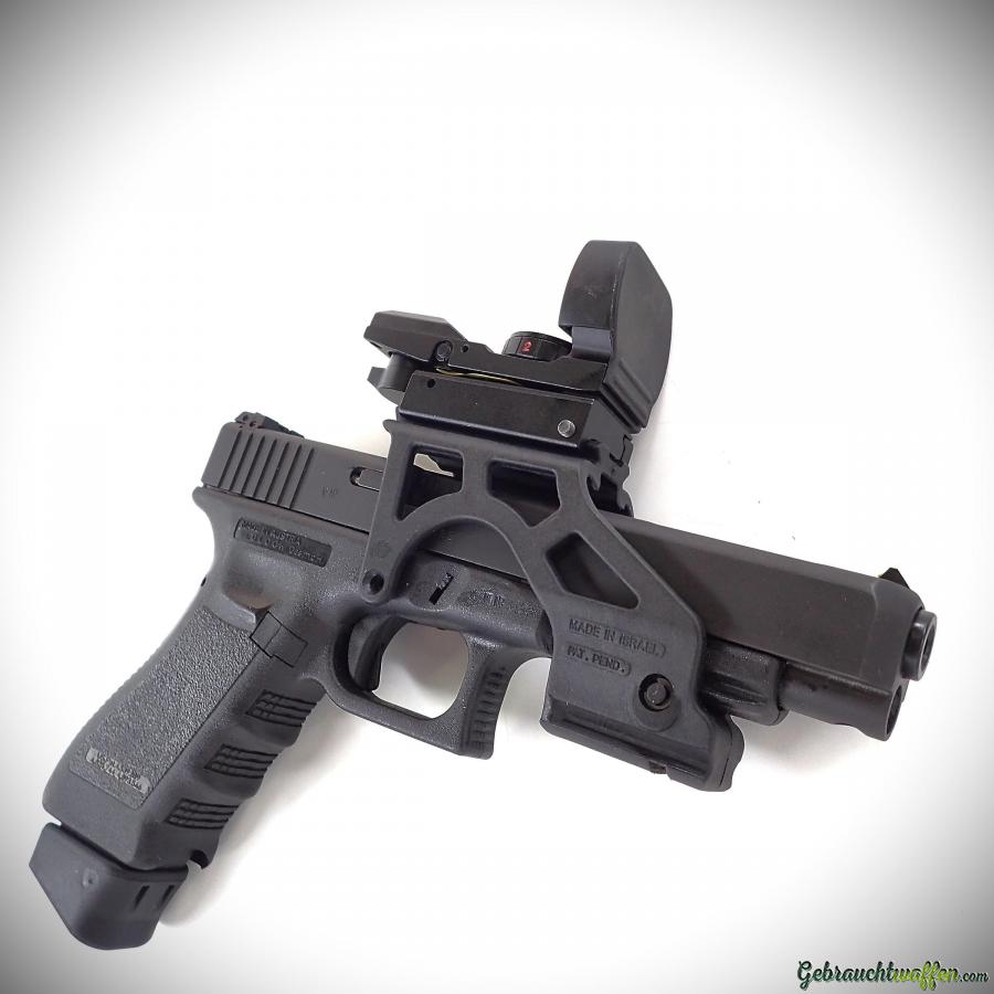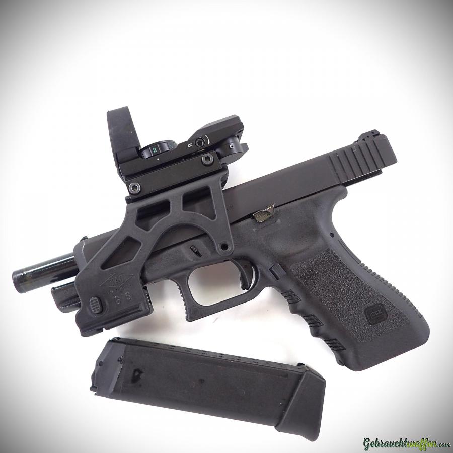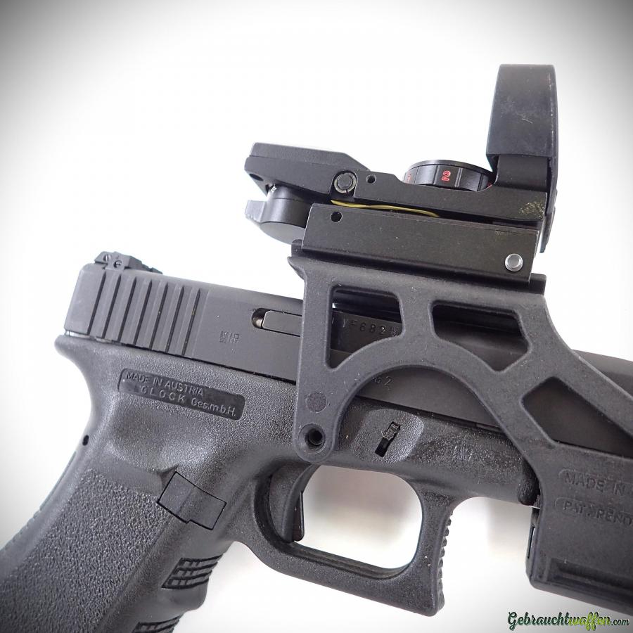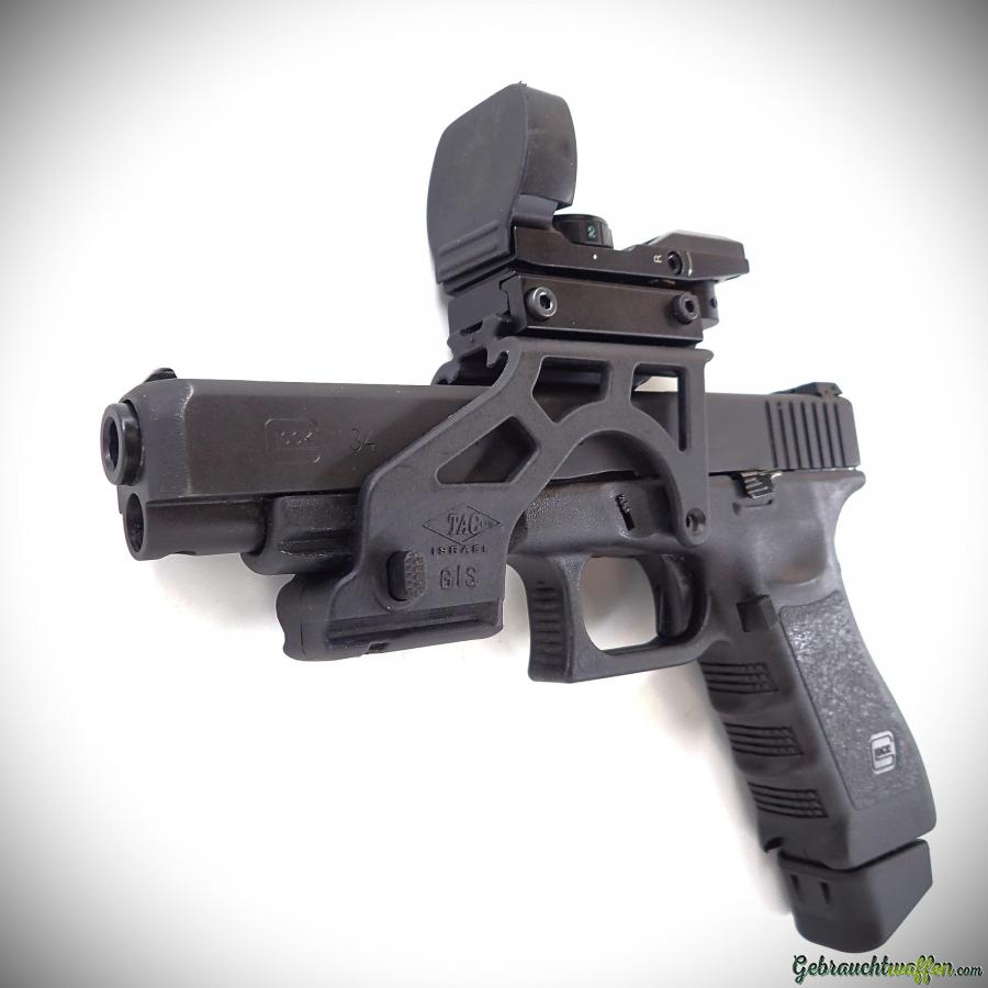 Glock Pistole Mod. 34 Gen4, Kaliber 9 mmP, mit abnehmbarer Leuchtpunkthalterung am Gehäuse, verstellbarer Kimme, in gutem Zustand, wird mit Leuchtpunktvisier geliefert.