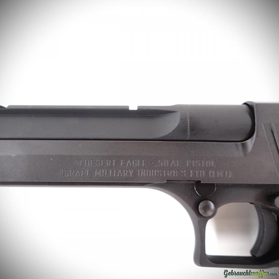 Pistolet IMI mod. Desert Eagle, cal. 50AE, 3ème génération du modèle (MK XIX), canon polygonal de 6 pouces avec rail pour le montage d'une lunette, système de recul par emprunt de gaz, hausse et guidon fixes, fabriqué en Israël, en excellent état, livré avec sa boîte et 2ème chargeur.