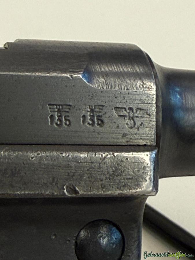 Sehr schön erhaltene Mauser P08 mit "Adler" Stempelungen.