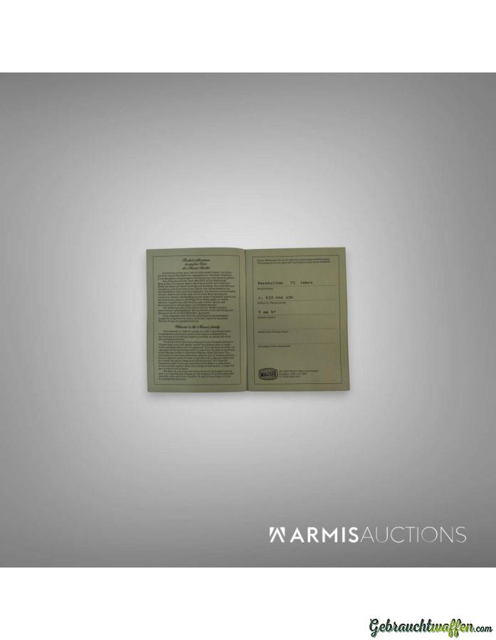 Originalpapiere, inklusive Mauser-Zertifikat, Bedienungsanleitung, Testscheibe