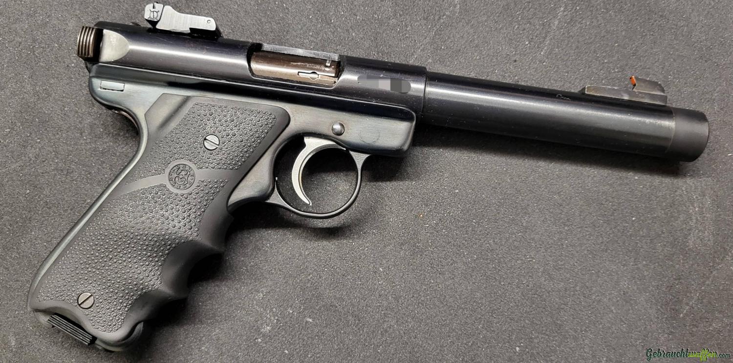 Schöne Ruger Mark II Target mit Bull Barrel und Gewinde. Das Gewinde ist ein 1/2"x20 UNF und wurde nachträglich von der Gunfactory gemacht.