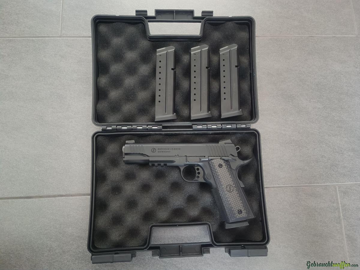 Kaum geschossene 1911er von Schmeisser mit 5 Zoll Lauf. Die Schussbelastung liegt bei ca 300. Ich verkaufe die Waffe weil sie mir "zu wenig gut liegt", ich schiesse lieber mit meinen anderen Pistolen.