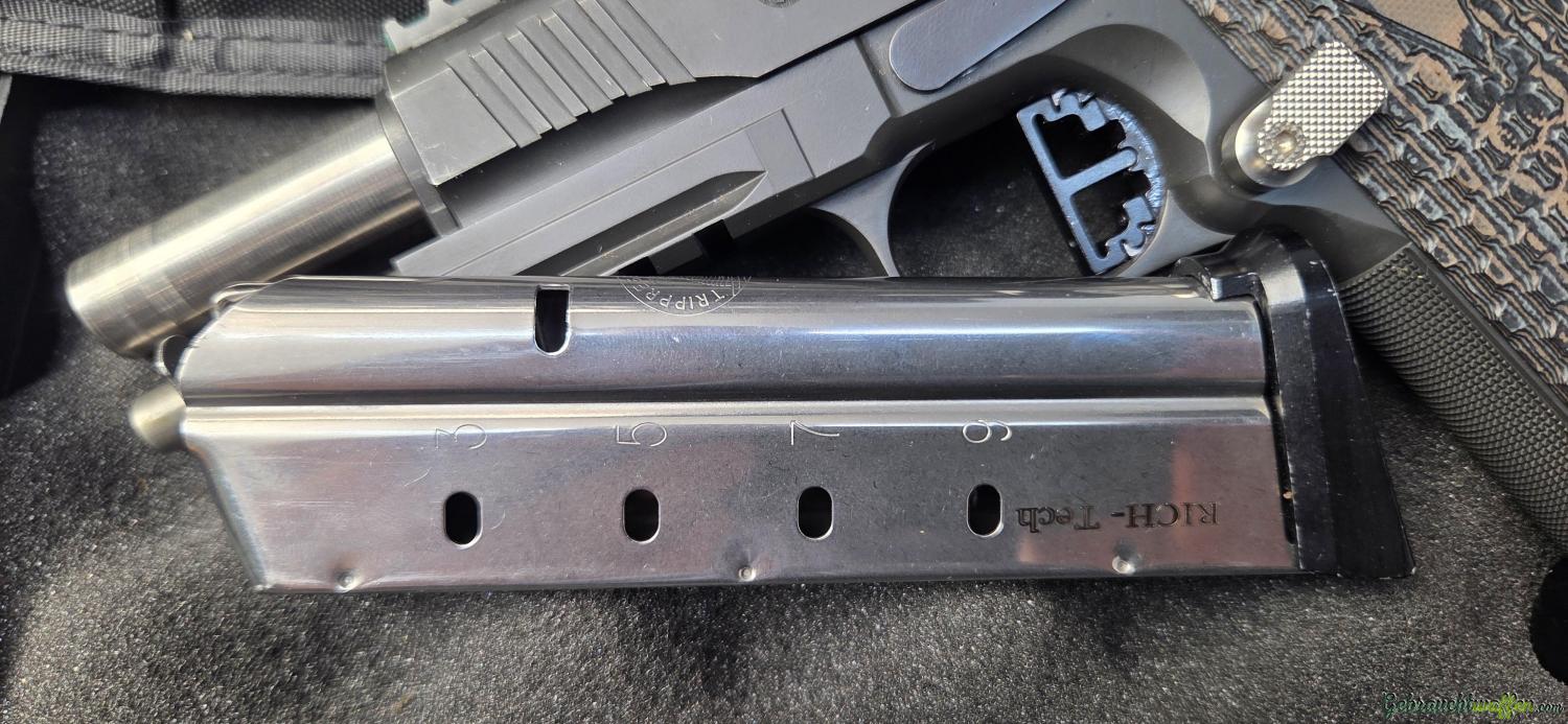 Fast alle Innereien sind ersetzt worden. Infinity 1911 Teile verbaut. Federsystem, Abzug Hammer. Alle Federn. 6 Magazine die Funktionieren. Die von Schmeisser hab ich weggeworfen.