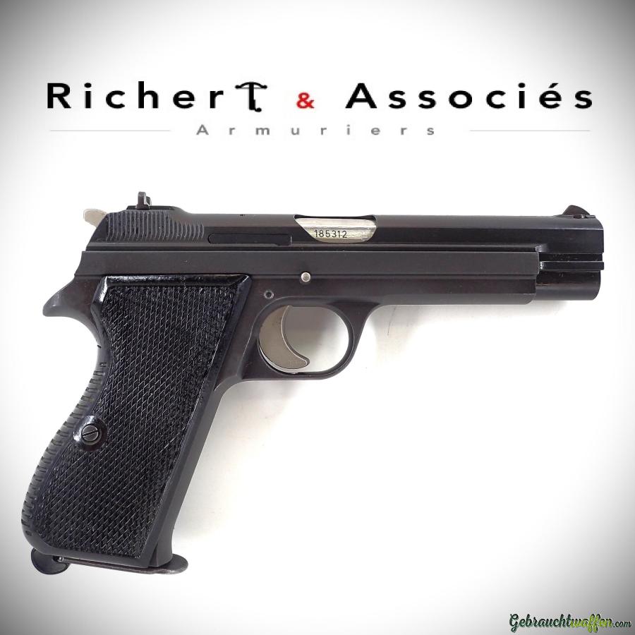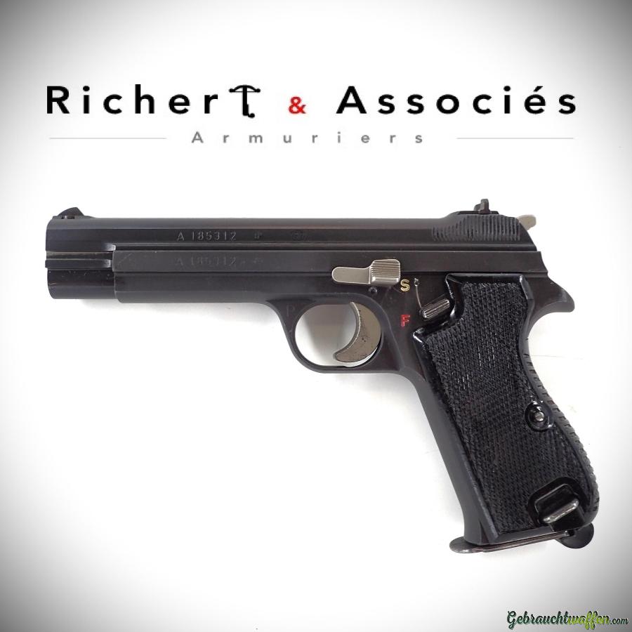 PROMOTION - Basic Pack: SIG P49 pistols, caliber 9mmP, ex-army, second series (P210-2), SN ranging from A116,000 to A213,000, some with Hämmerli mounts, inspected and overhauled (percussion, ejection, etc.), overall condition ranging from very good to excellent, but very similar to the model pictured, delivered with a single magazine.