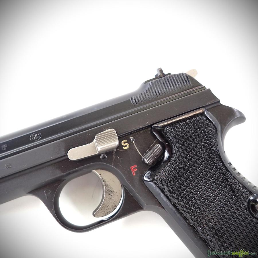 PROMOTION - Plus Pack: SIG P49 pistols, caliber 9mmP, ex-army, second series (P210-2), SN ranging from A116,000 to A213,000, some with Hämmerli mounting, inspected and overhauled (percussion, ejection, etc.), overall condition ranging from very good to excellent, but very similar to the model pictured, comes with two magazines.