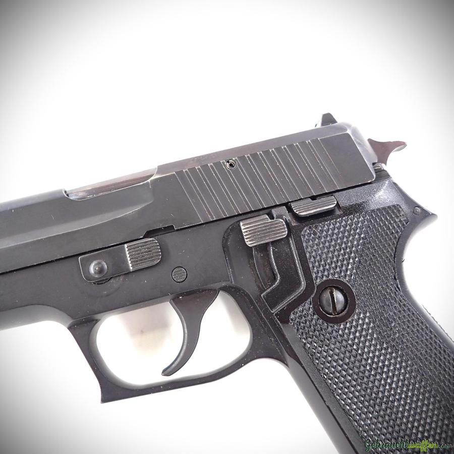 Pistole SIG Mod. P75, Kaliber 9 mm P, 2. Serie, aus Armeebeständen, in sehr gutem Zustand, Lieferung mit Holster, Reinigungsset und 2. Magazin.