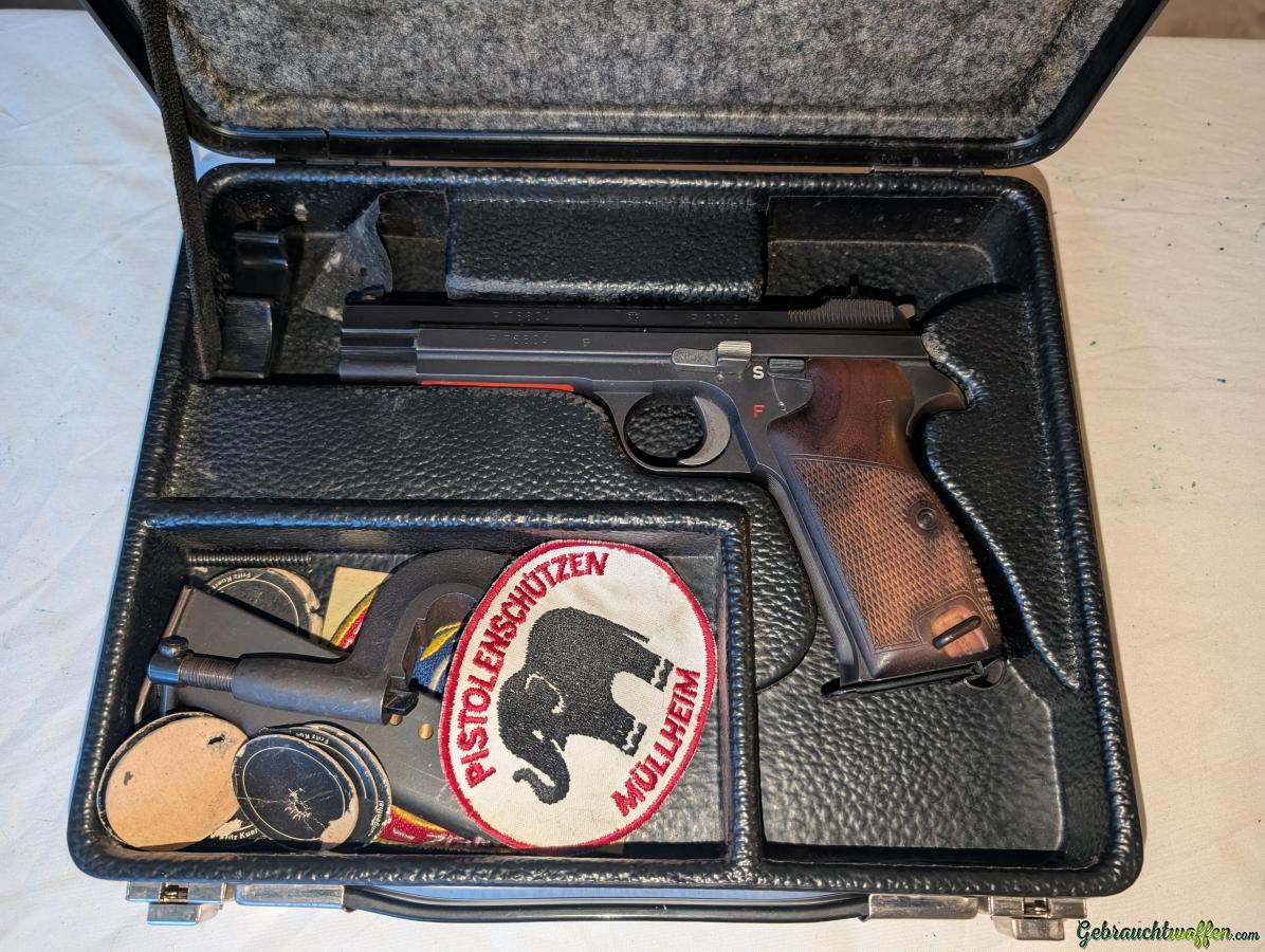 Die -6 Variante gilt als die präziseste Ausführung der P210 Serie für das sportliche Schiessen. Im Kaliber 7.65mm ist sie seltener zu finden als die 9mm-Version und wird wegen ihrer gestreckten Flugbahn auf 50m hoch geschätzt.