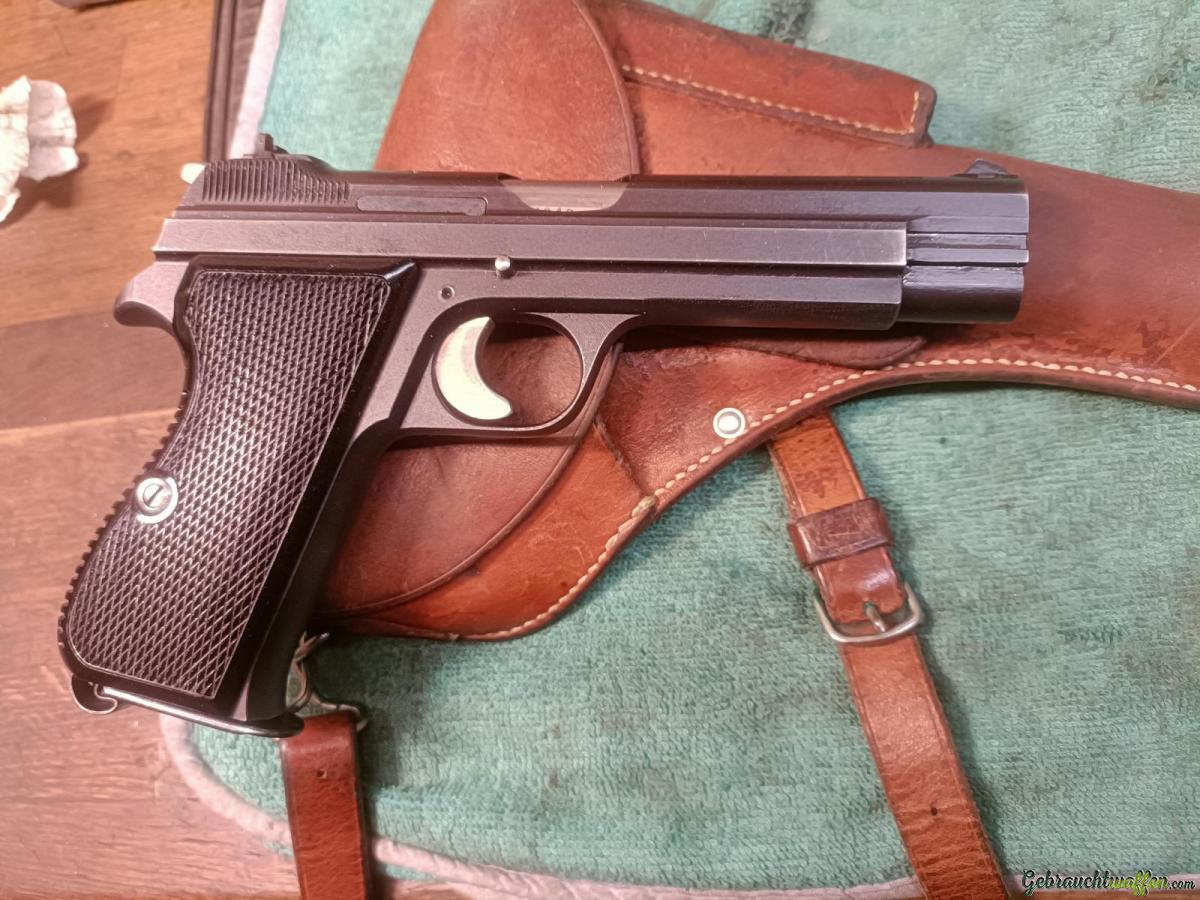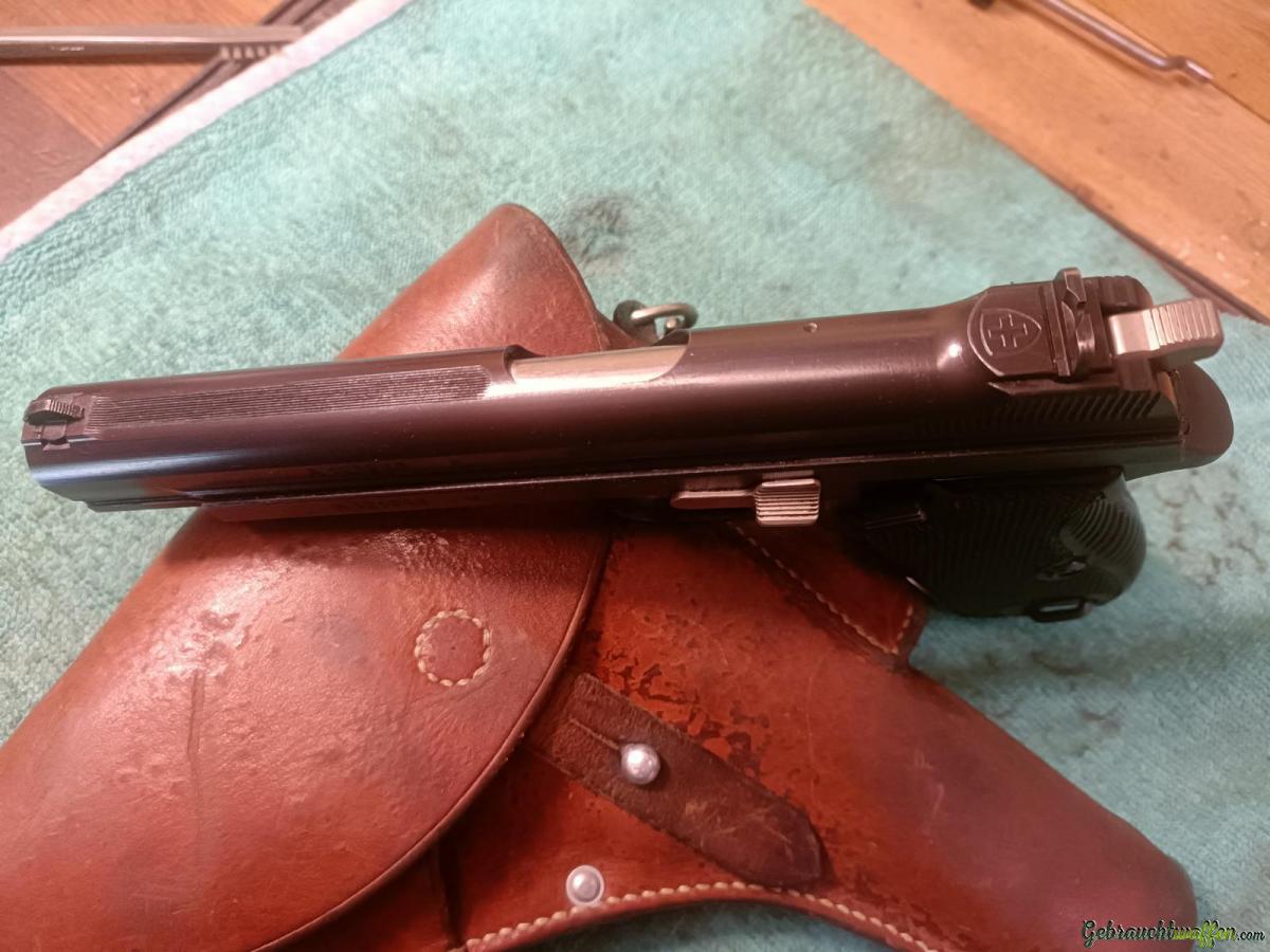 leichte Gebrauchsspuren - wenig geschossen - neuwertig - Nummerngleich (auch Schloss) - mit Leder und Res. Magazin - Waffe ist aus 1.Hand (Nachlass)