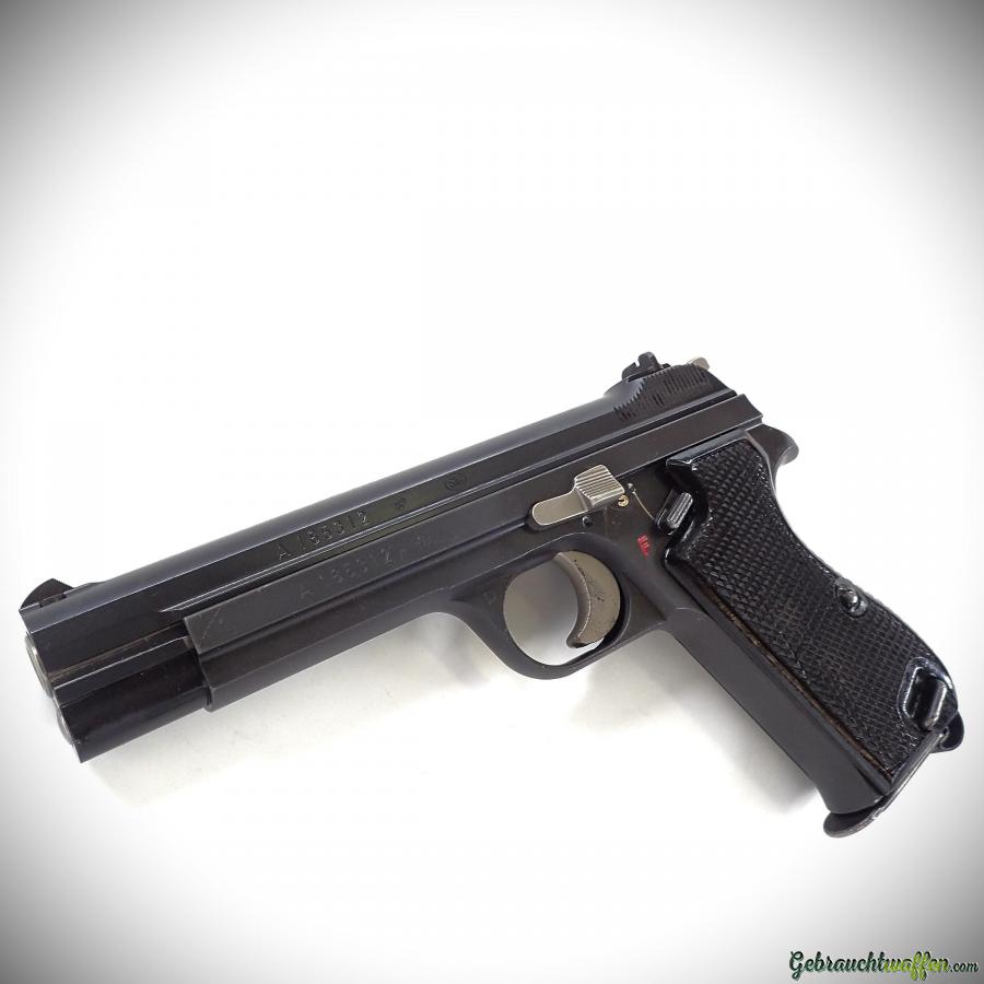 AKTION – Basispaket: SIG P49 Pistolen, Kaliber 9 mm P, ehemalige Armee, zweite Serie (P210-2), Seriennummern von 116.000 bis 213.000 A, teilweise mit Hämmerli-Montage, geprüft und generalüberholt (Schlagwerk, Auswurf etc.), Gesamtzustand sehr gut bis ausgezeichnet, aber sehr ähnlich dem abgebildeten Modell, Lieferung mit Einzelmagazin.