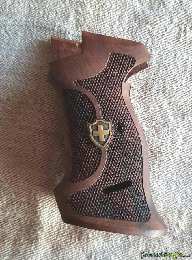 Verkauf aus Sammlung ein sehr schönen Nussbaum-Holz Match-Griff zu SIG 210 -- Der Griff ist unbenutzt und Neu -- Mit Ausnehmung der typischen Riemenöse daher passend für viele 210er Modelle -- Abholung oder Versand möglich