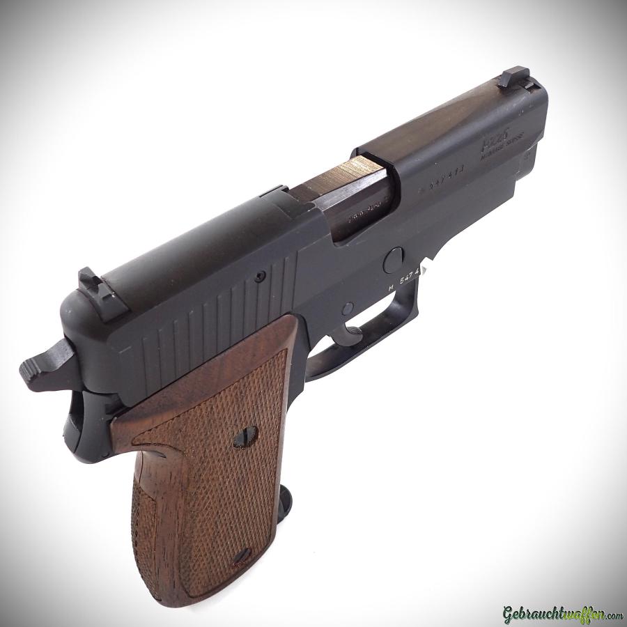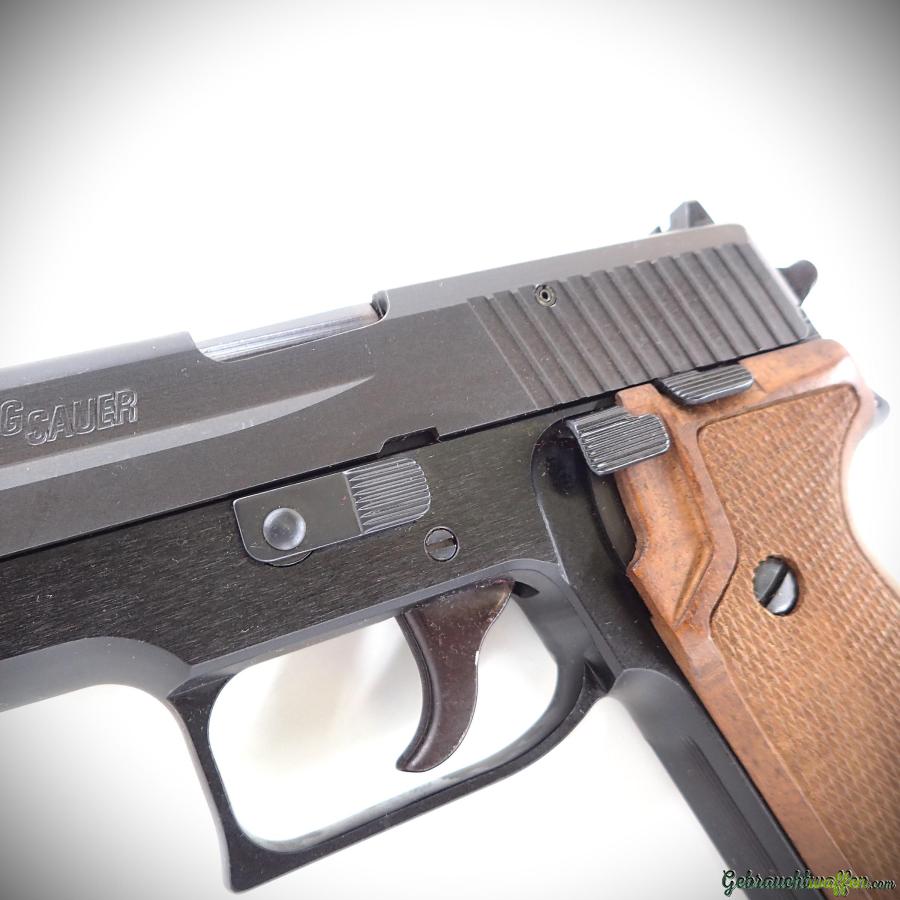 Sig Sauer P225 Pistole, Kaliber 9 mm P, deutsche Fertigung mit Schweizer Montage, Holzgriffschalen, sehr guter Zustand, inklusive Originalverpackung.