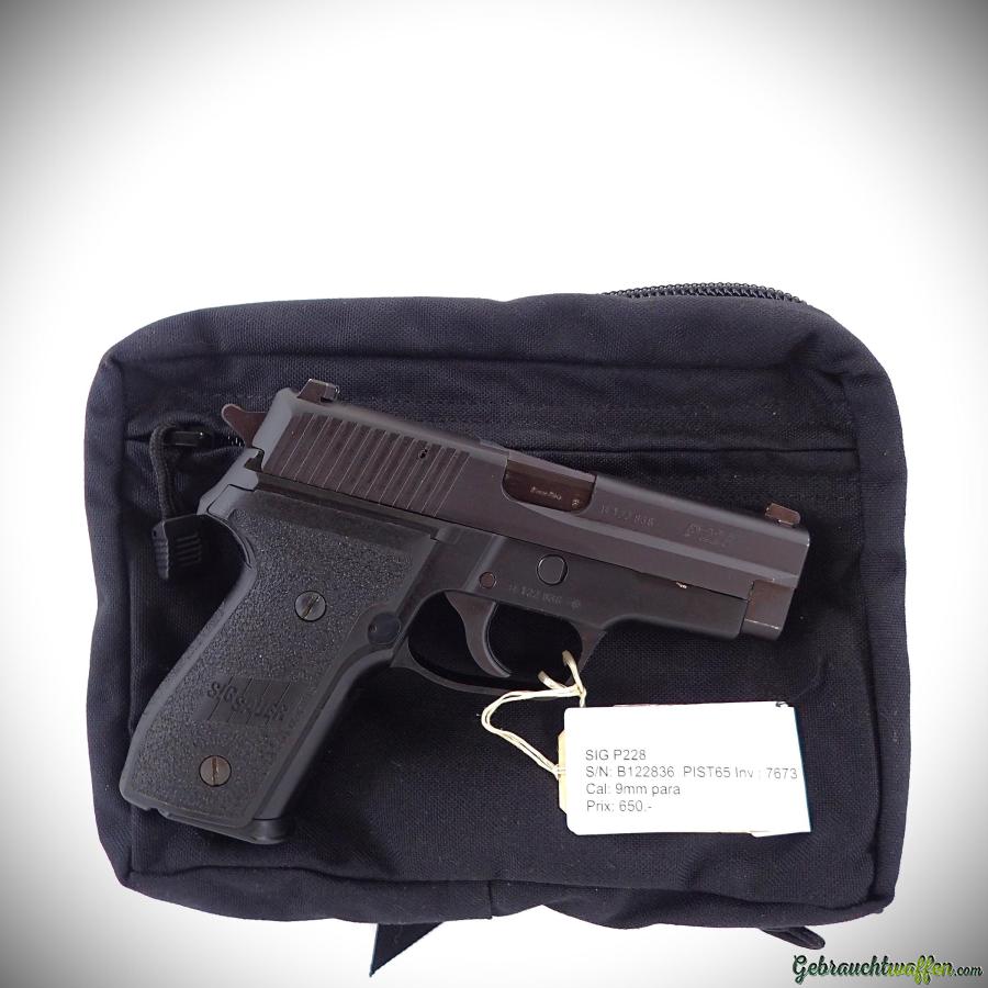 Pistolet Sig-Sauer mod. P228, cal. 9mmP, avec hausse et guidon tritium, en bon état, livré avec une sacoche de transport.