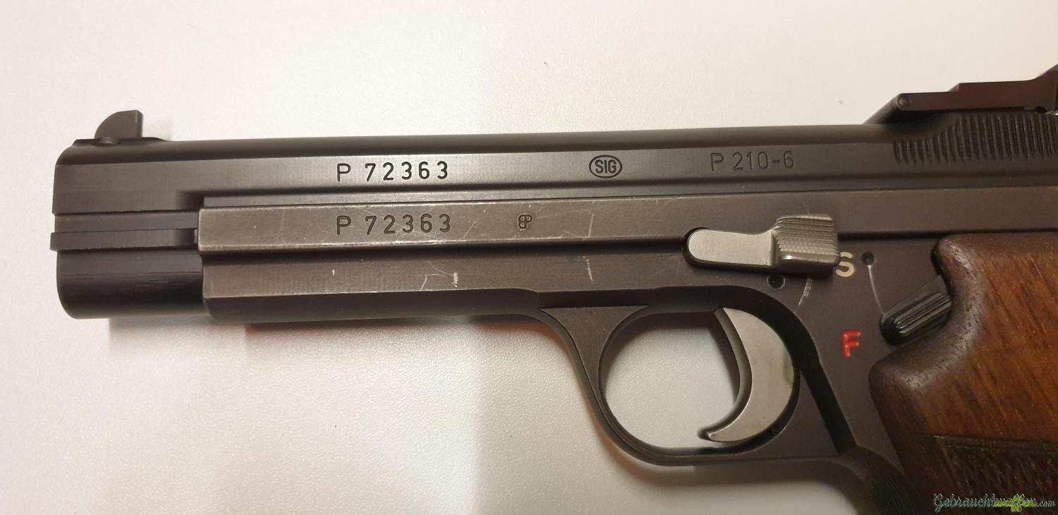 Die Sig P210-6 ist als Sportversion mit 120-mm-Lauf in den Kalibern 7,65 Parabellum und 9 mm Parabellum erhältlich. Sie verfügt über Holz- oder Kunststoffgriffe, einen verstellbaren Abzug, feste oder verstellbare mikrometrische Visierung, eine sandgestrahlte Oberfläche und ein Standard- oder Heavy-Griffstück.