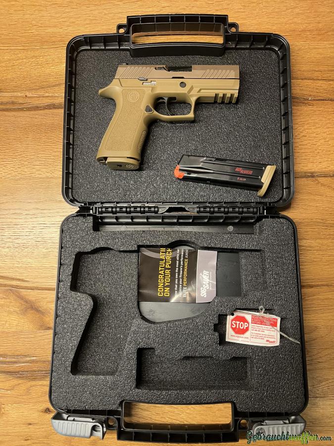 Wenig gebrauchte SIG P320 FDE mit XCarry Coyote Griff 9mm PARA, 2 x 17 Schuss Magazin