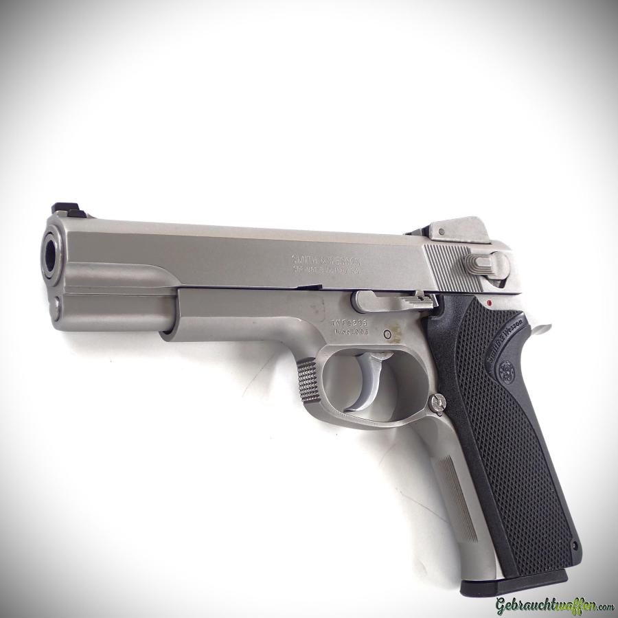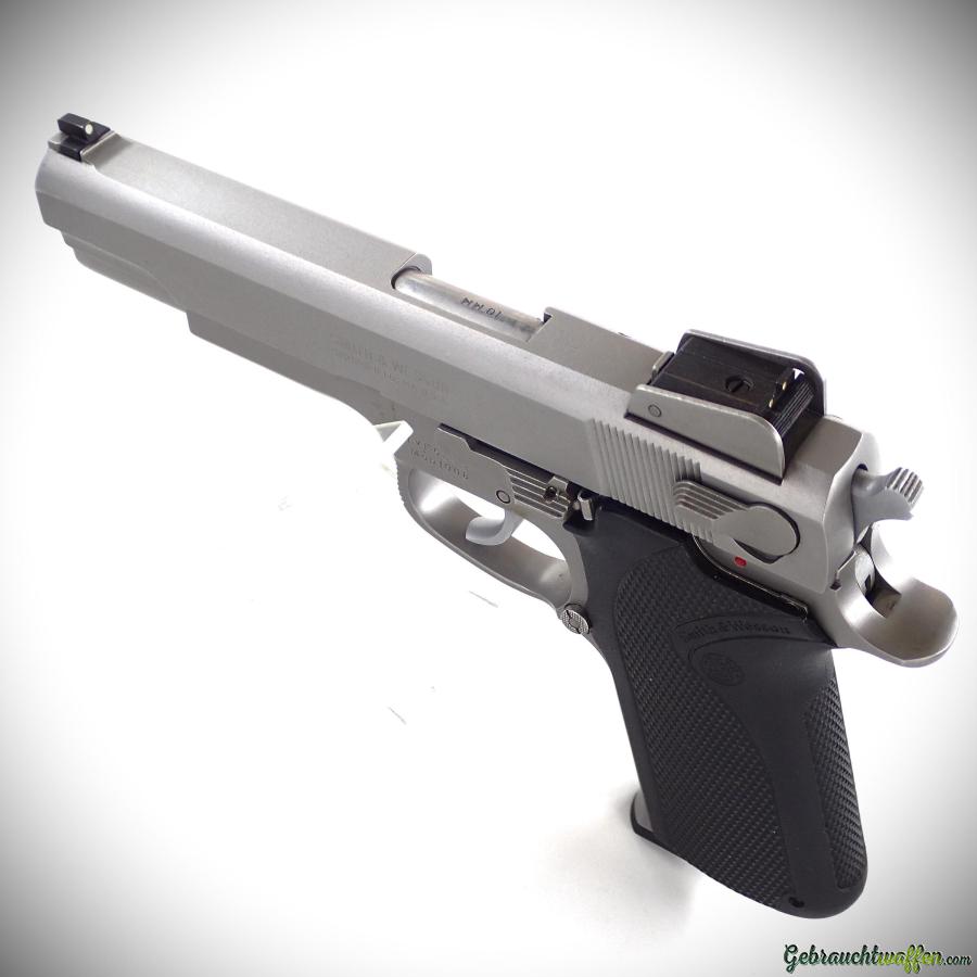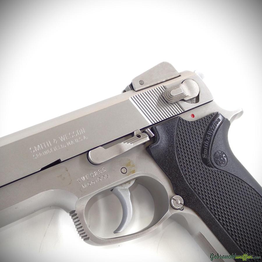 Smith & Wesson Pistole Modell 1006, Kaliber 10 mm Auto, 9-Schuss-Magazin, 5-Zoll-Lauf, SA/DA-Abzug mit beidseitig bedienbarem Entspannhebel, verstellbare Kimme, Baujahr 1992, sehr guter Zustand.