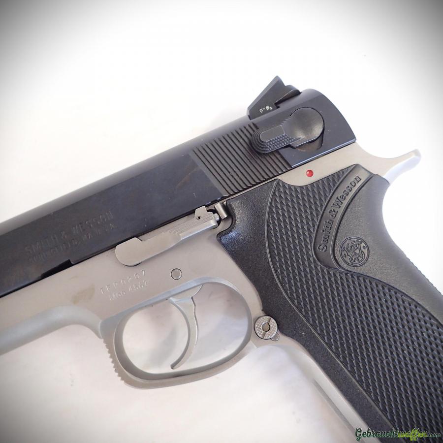 Halbkompakte Pistole Smith & Wesson Mod. 4567, Kal. 45acp, 4.25 Zoll Lauf, 8 Schuss Magazin, Stahlgehäuse und Verschluss, Duo-Tone Finish, beidhändig bedienbarer Hahnentspannungshebel, „bobbed“ Hammer, Novak Kimme, hergestellt in weniger als 1'250 Einheiten im Jahr 1991, gebraucht, neu, ungeschossen, kommt mit Box, Zubehör und Original 2.