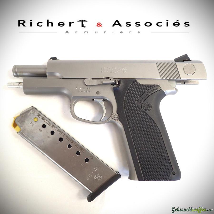 Smith & Wesson pistol, mod. 4586, cal. 45acp, stainless steel frame and Slide, DAO trigger, Novak sight, used, never fired, delivered with box, accessories and 2nd original magazine.