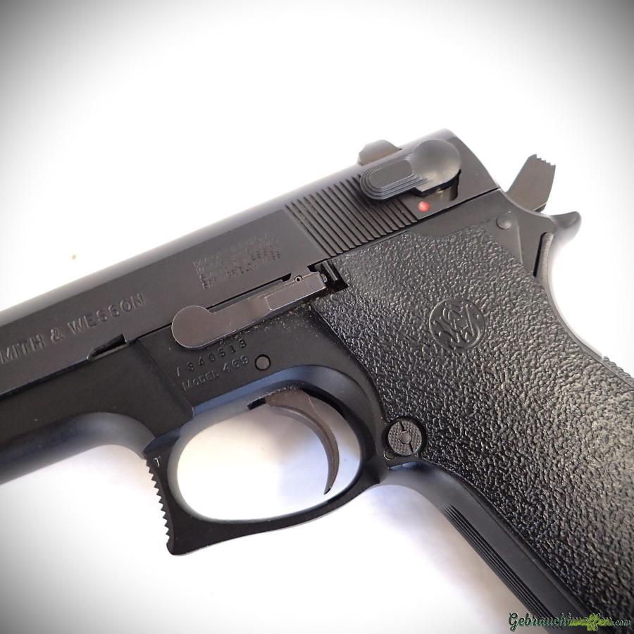 Kompakte Pistole der 2. Generation von Smith & Wesson, Mod. 469, Kal. 9mmP, 3.5 Zoll Lauf, 12 Schuss Magazin, Leichtmetallgehäuse und Stahlverschluss, DA/SA Abzug, "bobbed" Hammer, gebraucht, neu, nie geschossen, Lieferung mit Box, Zubehör und 2.