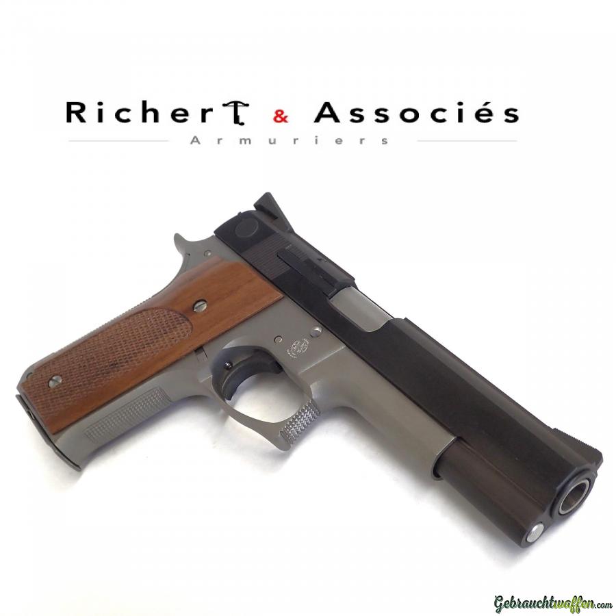 Pistole S&W mod. 745, Kal. 45acp, 5-Zoll-Lauf, Duo-Tone-Finish, neuwertiger Zustand, geliefert in Originalverpackung mit Bedienungsanleitung und 2.