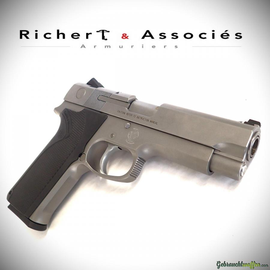 Smith & Wesson pistol, mod. 4586, cal. 45acp, stainless steel frame and Slide, DAO trigger, Novak sight, used, never fired, delivered with box, accessories and 2nd original magazine.
