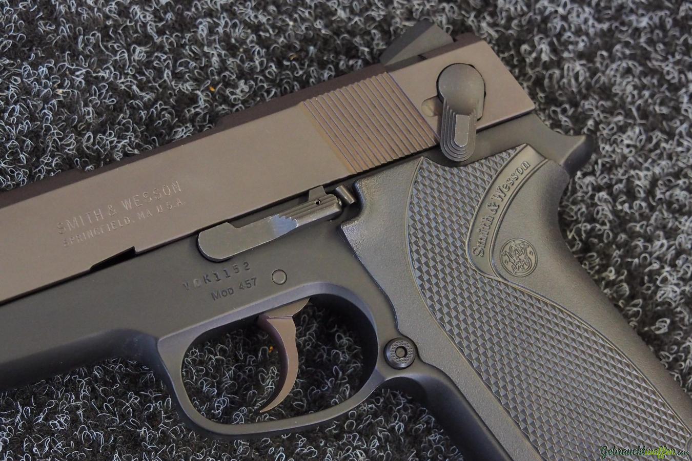 For sale is a beautiful S&W Model 457 pistol, 45acp caliber, 3-3/4 inch barrel version, in matte black finish, in mint condition. Comes in original box with accessories, 2nd magazine and instruction manual.