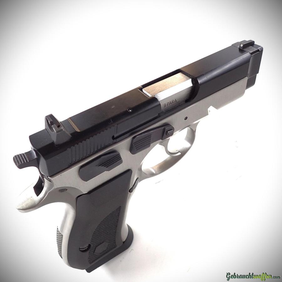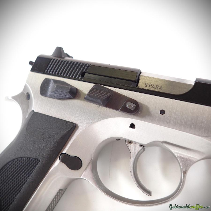 Sphinx Pistole Mod. 2000H, Kaliber 9 mm P, 3,5-Zoll-Lauf, Stahlrahmen und -schlitten, DA/SA-Abzug, Duo-Tone-Finish, beidseitige Sicherung und Schlittenhebel, feste Kimme, in sehr gutem Zustand, mit Polymerholster, Schutzhülle und zweitem Magazin.