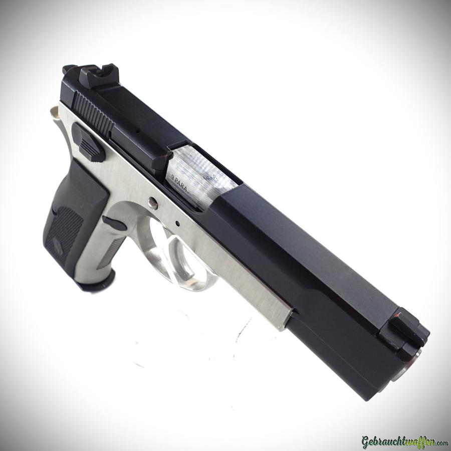 Sphinx Pistole Mod. 2000S, Kaliber 9 mm P, 15-Schuss-Magazin, Stahlrahmen und -schlitten, Duo-Tone-Finish, feste Visierung, in sehr gutem Zustand, mit Box, Handbüchern und zweitem Originalmagazin.