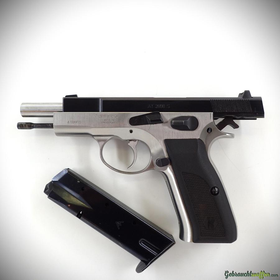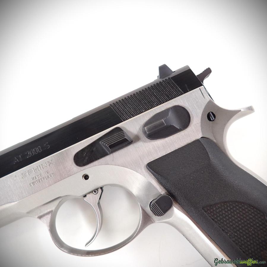 Sphinx pistol mod. 2000S, 9mmP caliber, 15-round magazine, steel frame and slide, duo-tone finish, fixed sights, in very good condition, comes with a second magazine.