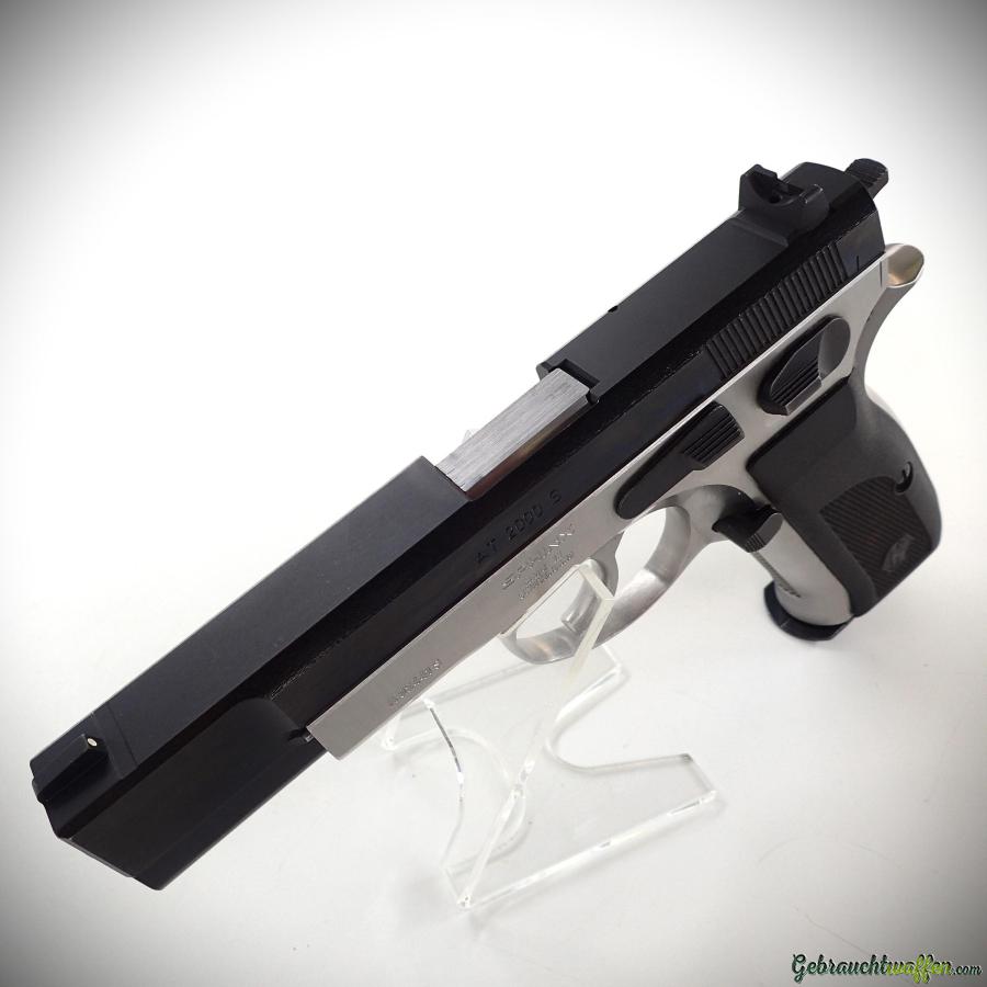 Sphinx Pistole Mod. 2000S, Kaliber 9 mm P, 15-Schuss-Magazin, Stahlrahmen und -schlitten, Duo-Tone-Finish, feste Visierung, in sehr gutem Zustand, mit zweitem Magazin.