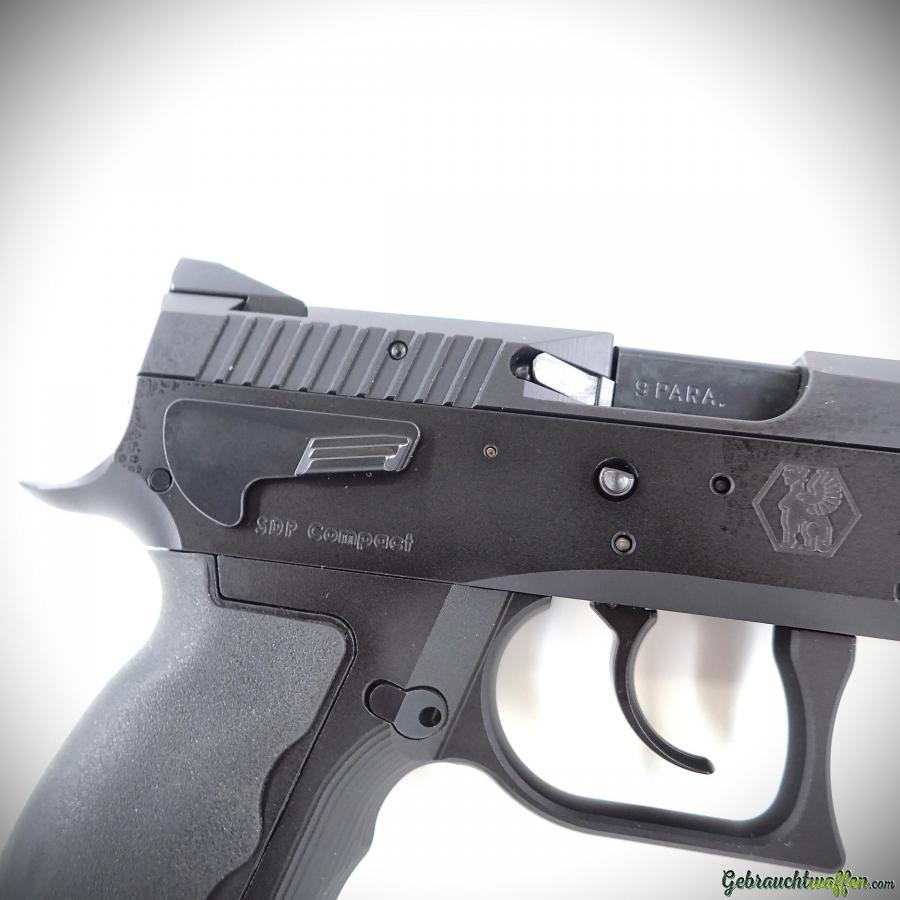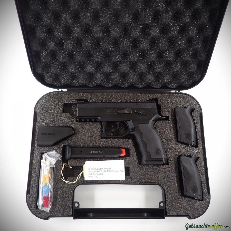 Sphinx-Pistole Mod. SDP Compact, Kal. 9mmP, 4 Zoll Lauf, DA/SA Abzug, Leichtmetallgriff und -gehäuse mit Zubehörschiene, beidhändig bedienbarer Hahnentspannungshebel, neue Waffe, ungeschossen, Lieferung mit Koffer, Zubehör und 2. original 15-Schuss-Magazin.