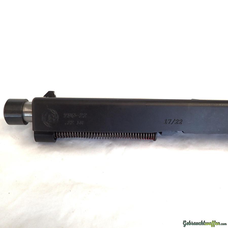 Conversion 22LR pour Glock 17/22 Tactical Solutions, mod. TSG-22, avec canon fileté, hausse réglable, 1x guidon d'origine + 1x guidon avec fibre, en excellent état, livré avec un chargeur 10 coups et un chargeur 15 coups.