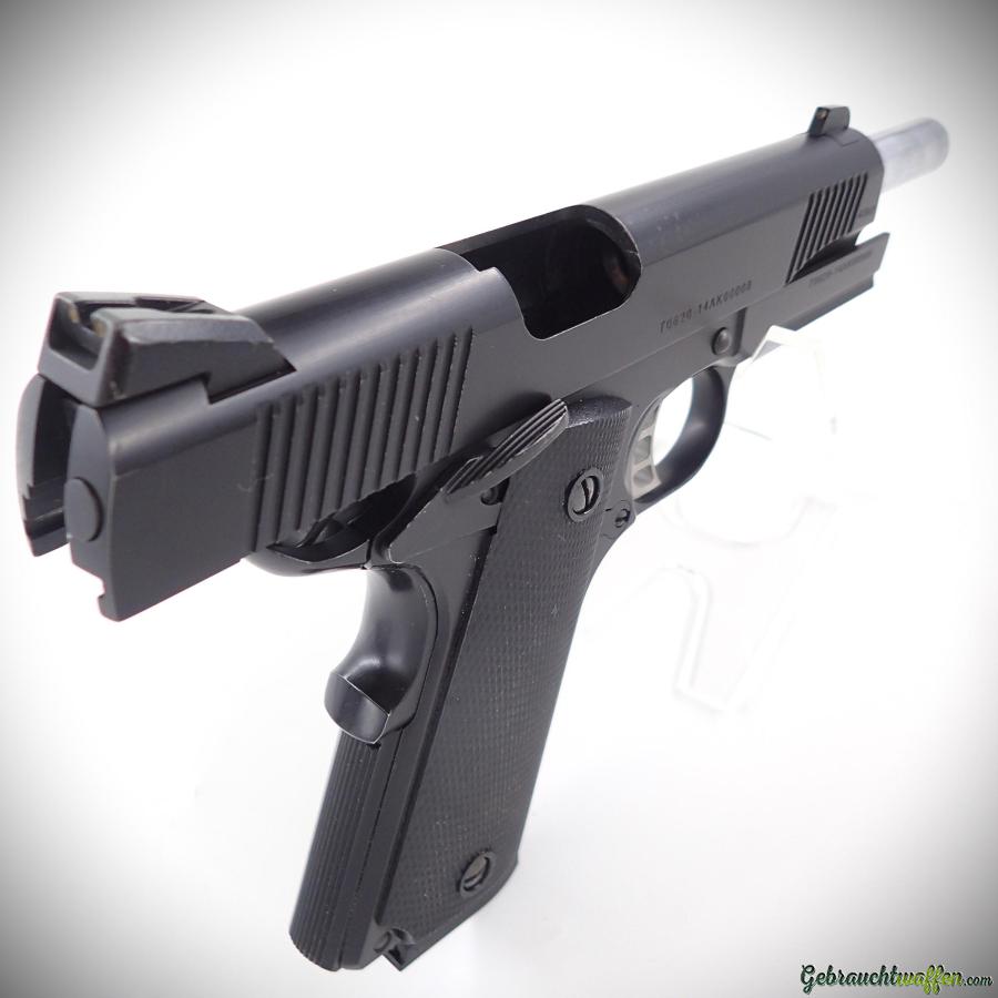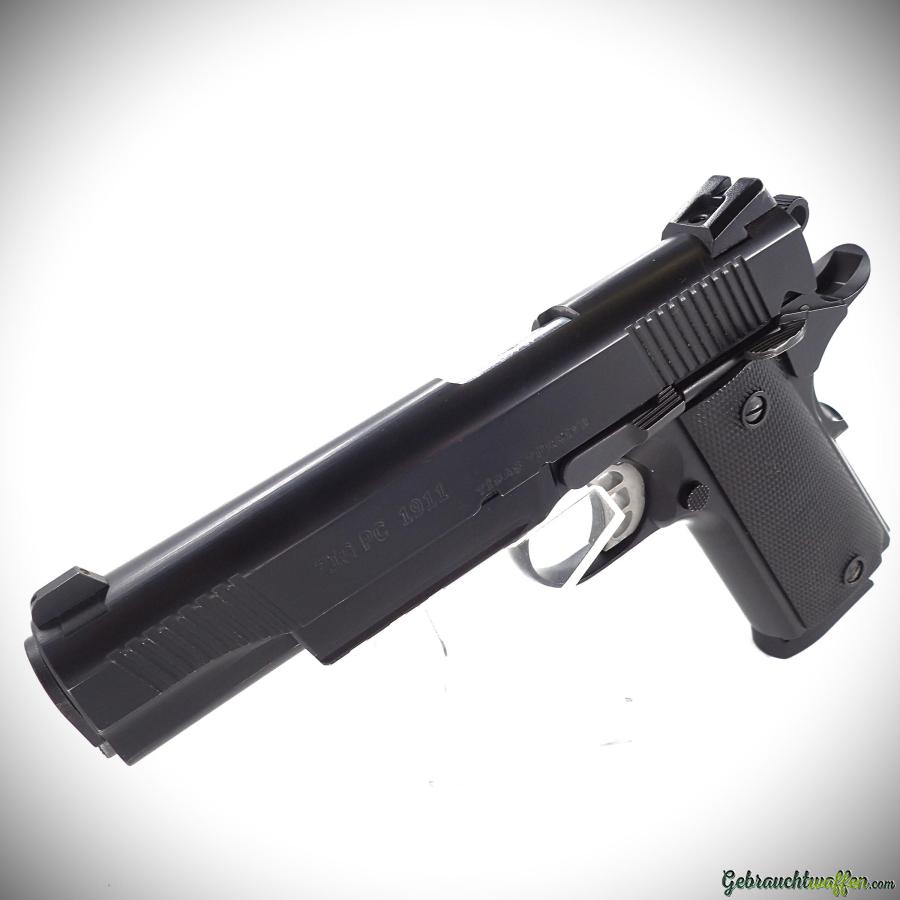 TISAS-Pistole Mod. ZIC PC 1911, Kal. 45acp, 5-Zoll-Lauf, Biberschwanzgriff-Sicherheitspedal, beidhändiger Verschluss-Sicherheitshebel, leichterer Hammer, feste Visierung Typ Novak, in sehr gutem Zustand, geliefert mit Box, Zubehör und 2.