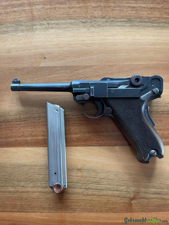 Zum Verkauf steht eine Parabellum-Pistole (Luger) der Waffenfabrik Bern (Schweizer Ordonnanz). Die Waffe befindet sich in sehr gutem, gepflegtem Zustand und wurde stets sachgerecht gelagert. Funktion nach bestem Wissen einwandfrei.