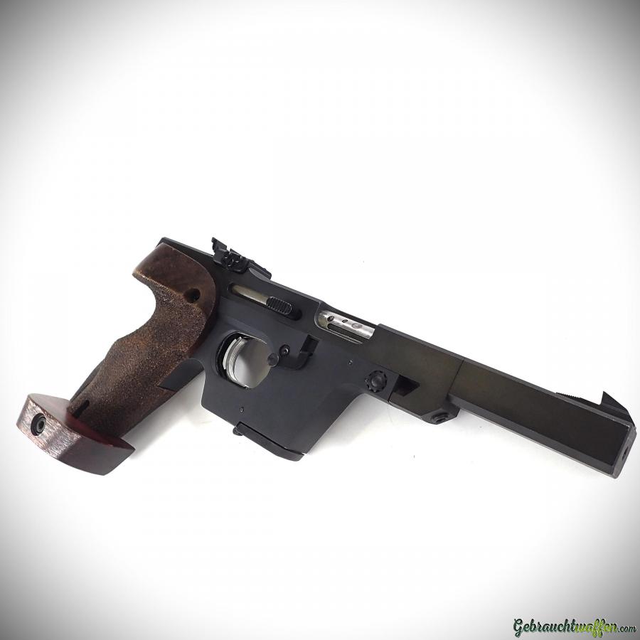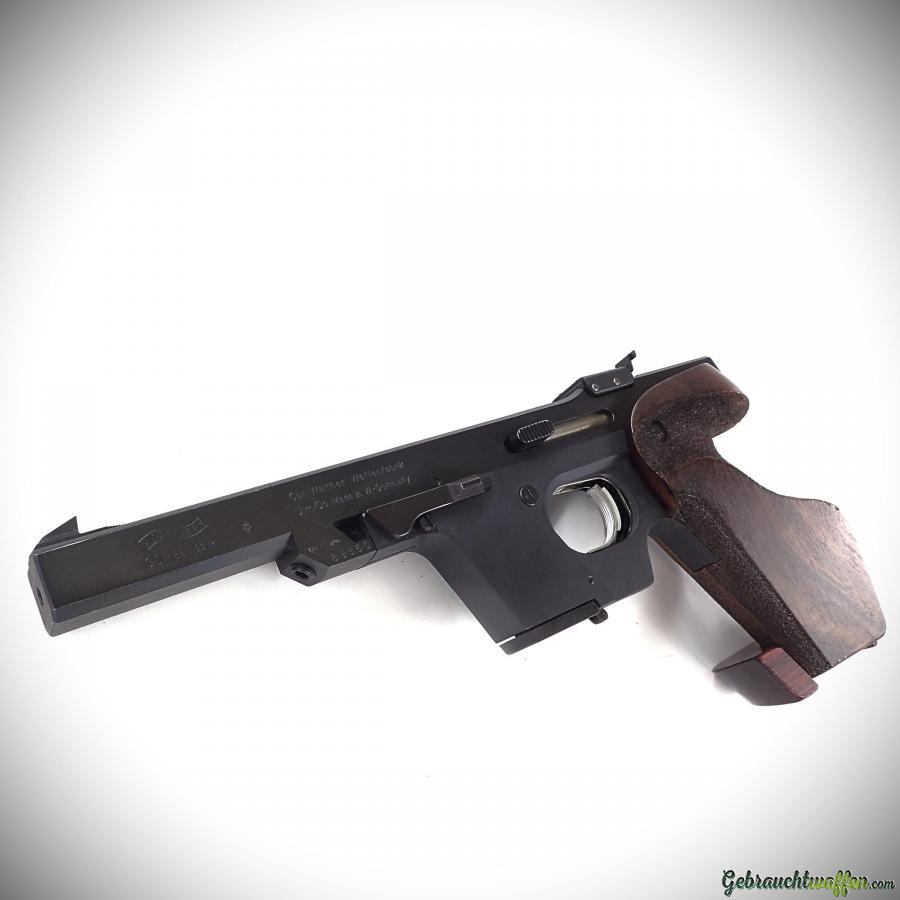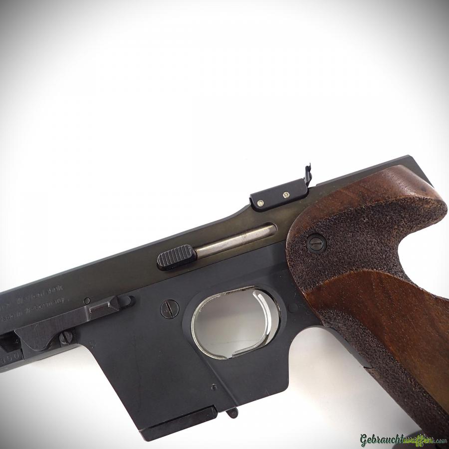 Walther pistol mod. GSP, cal. 22LR, 5-shot magazine, ergonomic right-handed wooden grip with adjustable base, adjustable rear sight, square front sight, in very good condition, supplied with 2nd magazine.