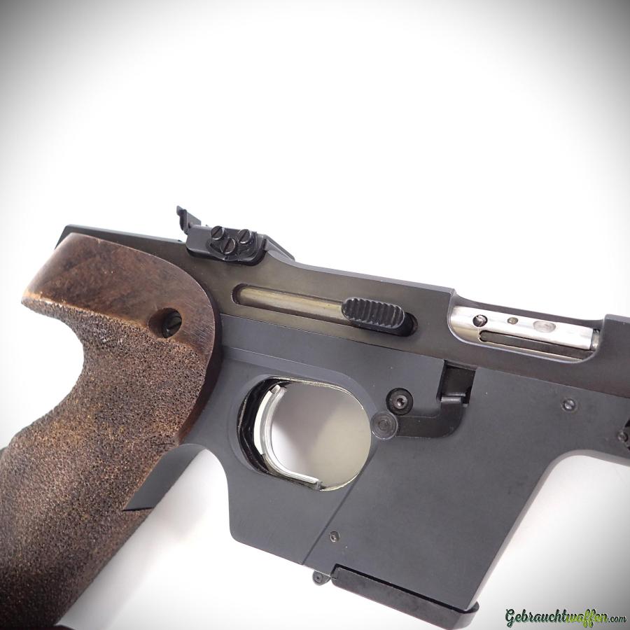 Walther pistol mod. GSP, cal. 22LR, 5-shot magazine, ergonomic right-handed wooden grip with adjustable base, adjustable rear sight, square front sight, in very good condition, supplied with 2nd magazine.