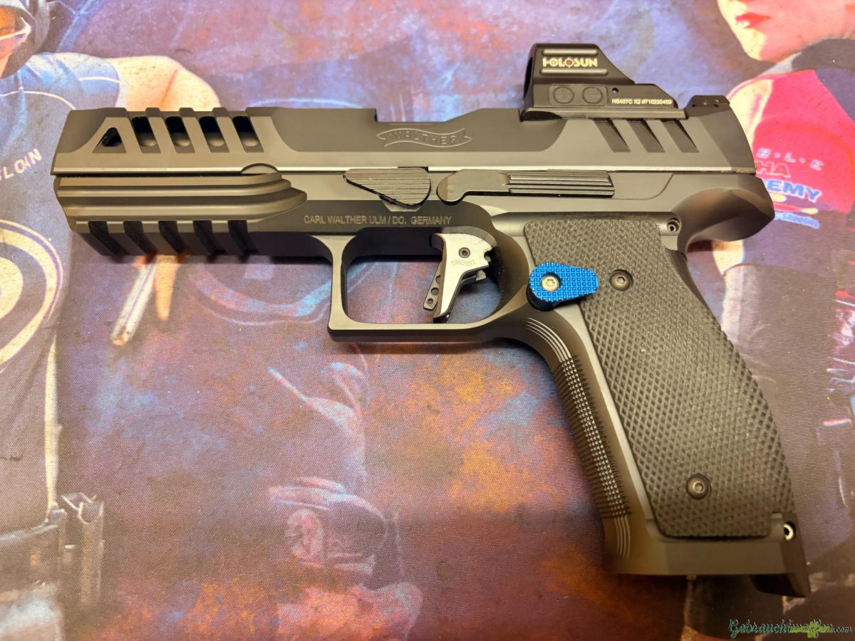 Ich verkaufe eine wenig geschossene Walther PDP Steel Frame 5" mit folgendem zusätzlichen Zubehör/Tuningteilen:
